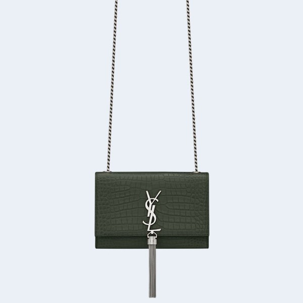 생로랑 크로커다일 케이트 스몰 태슬백 카키 실버 > 생로랑