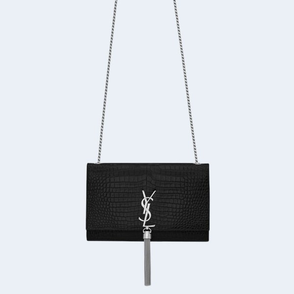 생로랑 크로커다일 케이트 미디엄 태슬 백 블랙 실버 > 생로랑