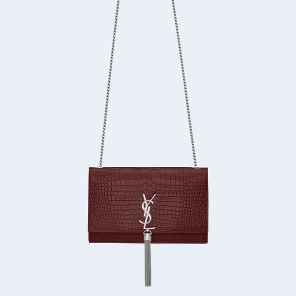 생로랑 크로커다일 케이트 미디엄 태슬 백 와인 > 생로랑