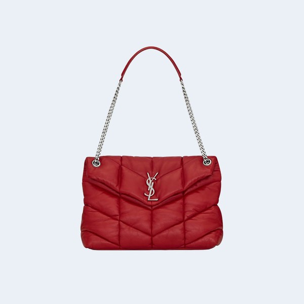 생로랑 PUFFER 레더 숄더백 레드 실버 > 생로랑