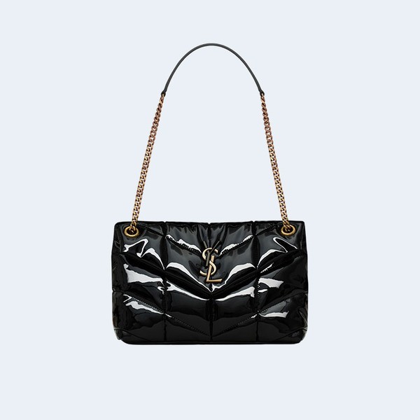 생로랑 모노그램 PUFFER 샤이니 레더 숄더백 블랙 골드 > 생로랑