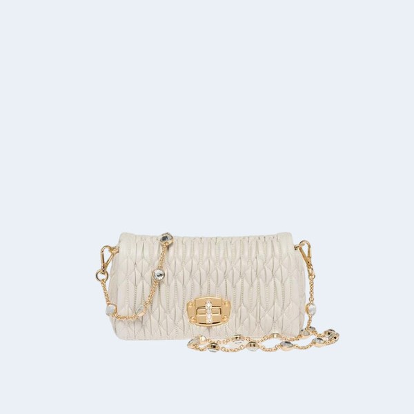 미우미우 마테라쎄 나파 가죽 크리스탈 미니백 화이트 > 숄더백