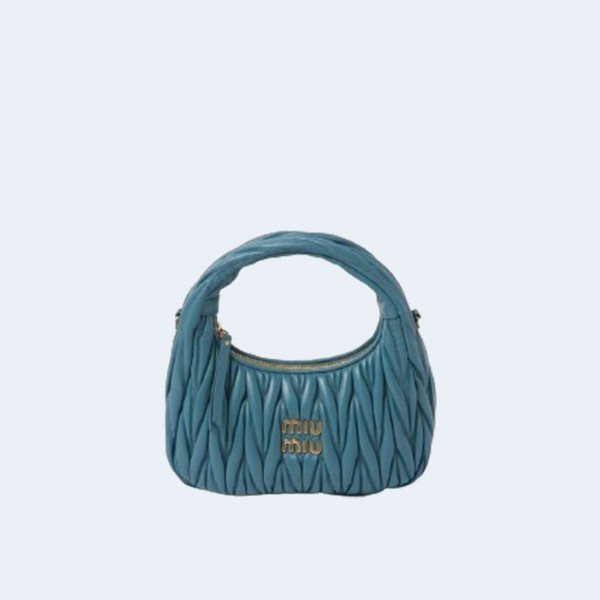 미우미우 스몰 완더 마테라쎄 나파 가죽 호보백 블루 > 토트백