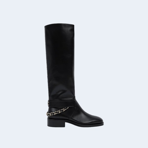 샤넬 하이 부츠 카프스킨 골드 메탈 & 블랙 > 부츠