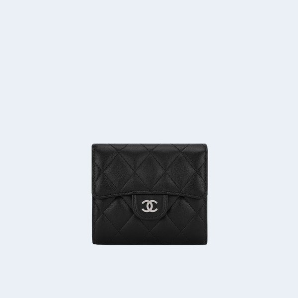 샤넬 클래식 램스킨 스몰 플랩 지갑 실버 > 샤넬