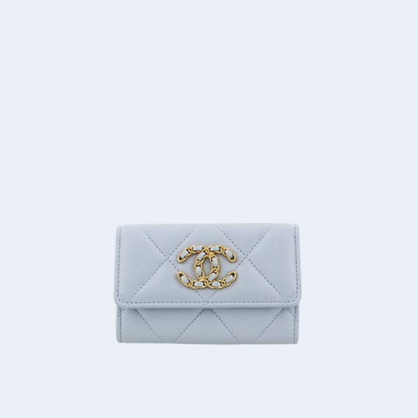 샤넬 19 플랩 카드 홀더 스카이 블루 > 샤넬