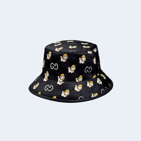 구찌 카와이 애니멀 프린트 블랙 코튼 버킷 햇 > 모자 / 비니