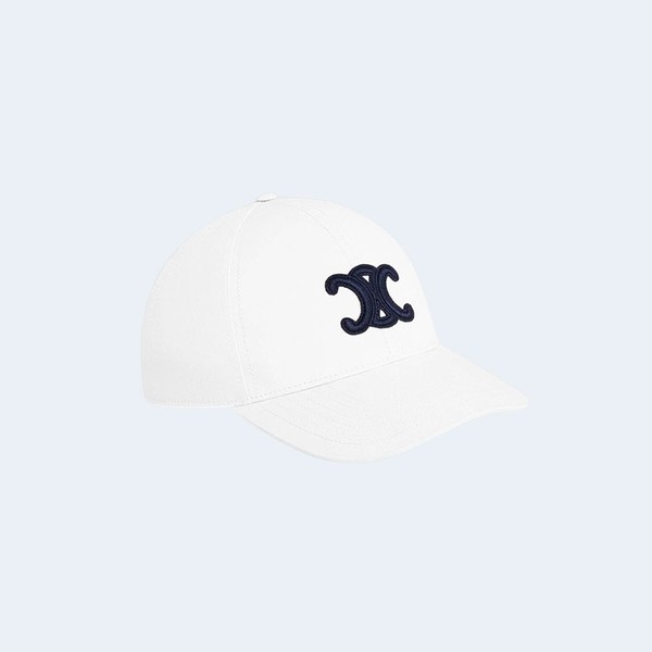 셀린느 트리옹프 화이트 코튼 베이스볼 캡 > 모자 / 비니