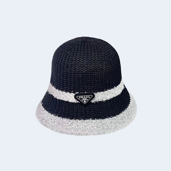 • 프라다 배색 블랙 니트 버킷 햇