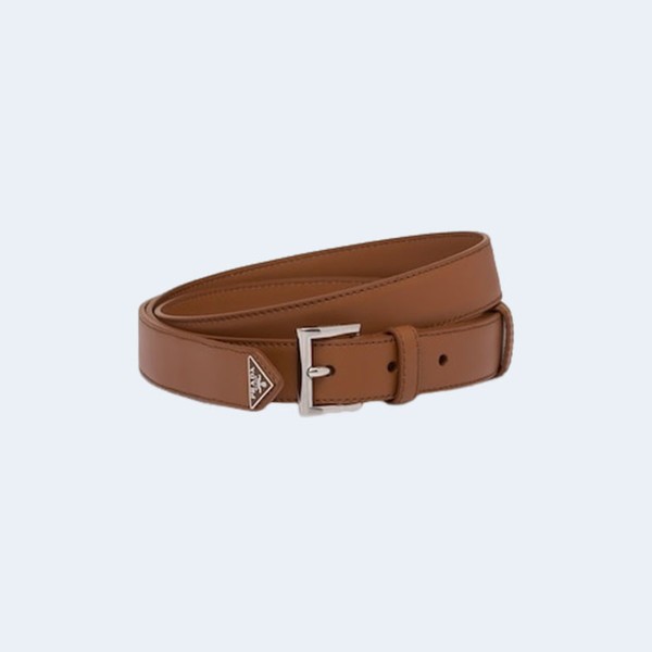 프라다 트라이앵글 로고 가죽 벨트 브라운 25mm > 프라다