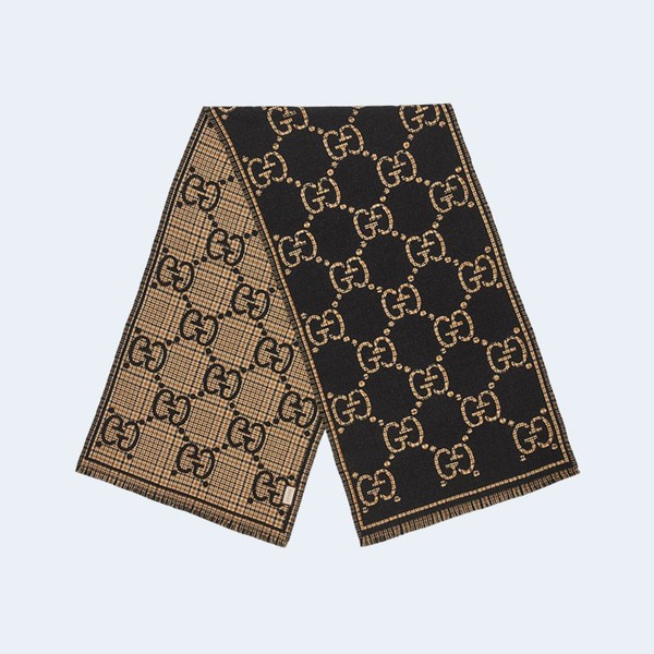 • 구찌 GG 체크 울 블랙 베이지 스카프