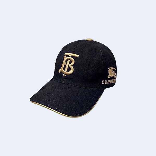 버버리 골드 자수 로고 블랙 베이스볼 캡 > 모자 / 비니
