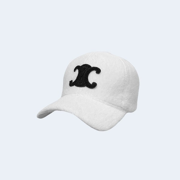 셀린느 트리옹프 화이트 퍼 베이스볼 캡 > 모자 / 비니