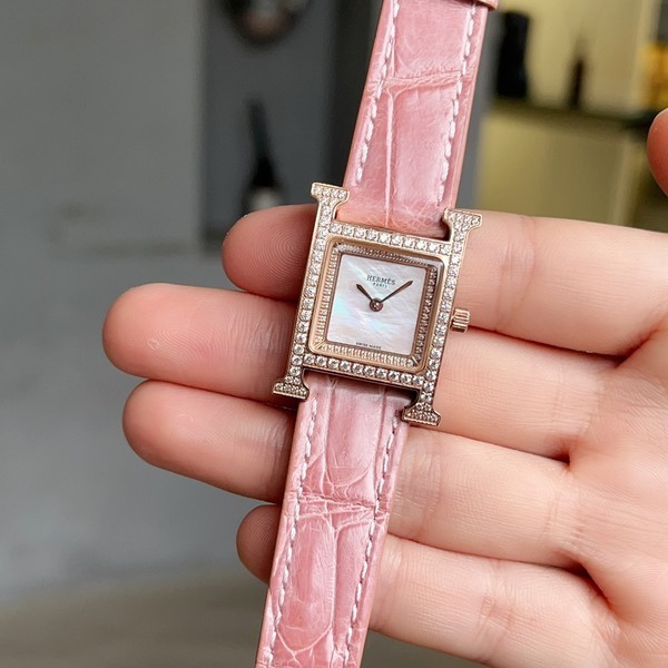 • 에르메스 여성 시계 에이치아워 로즈골드 다이야 핑크
