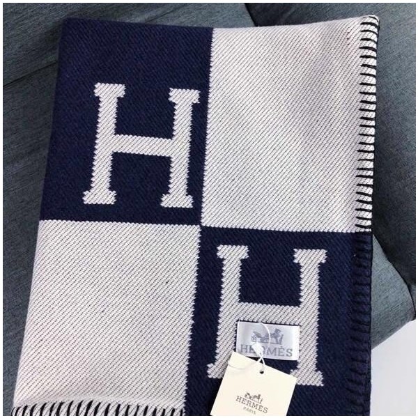 • 에르메스 아발론 H로고 블랭킷 담요 네이비