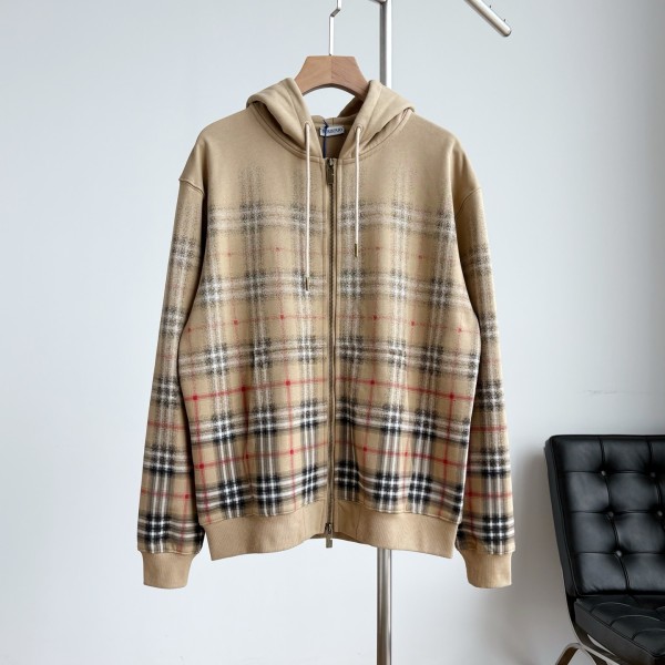 • 버버리 그라데이션 체크 코튼 지퍼 후디