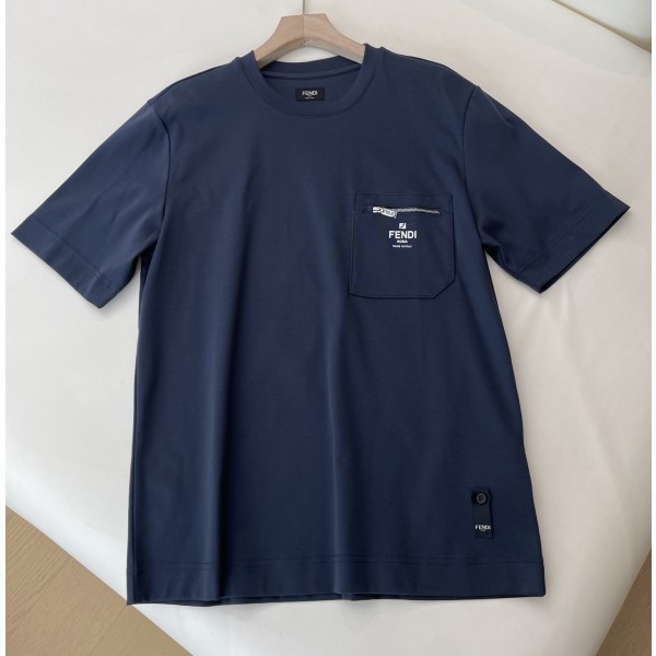 • 펜디 네이비 블루 코튼 티셔츠