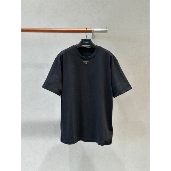 • 프라다 삼각 로고 패치 티셔츠