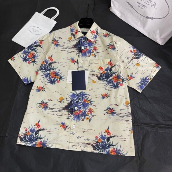 프라다 코튼 숏슬리브 셔츠 바닐라 > 셔츠