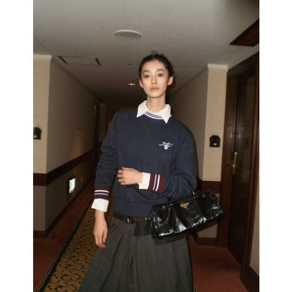 • 프라다 로고 자수 코튼 스웨트셔츠