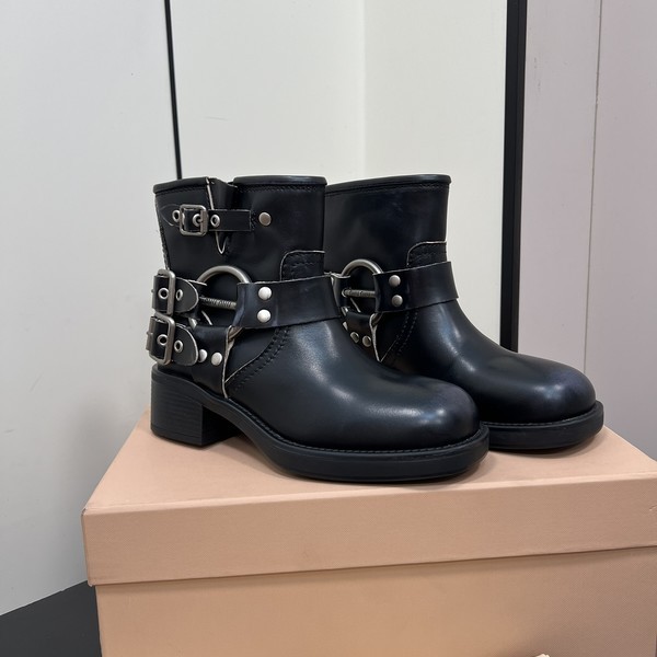 • 미우미우 룩 레더 부티 부츠 블랙