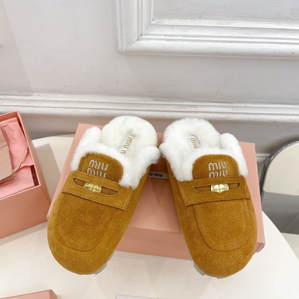 미우미우 스웨이드 시어링 뮬 카멜 > 미우미우