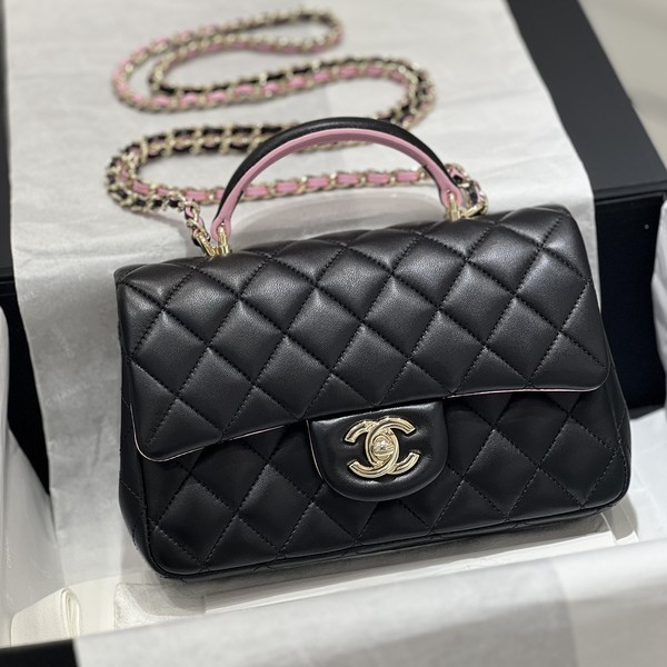 • 샤넬 핸들 미니 CF 플랩백 램스킨 블랙핑크