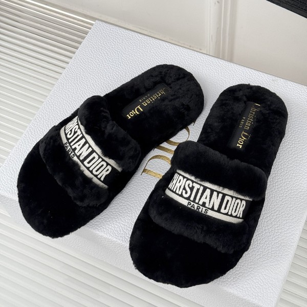디올 시어링 로고 퍼 뮬 슬리퍼 > 뮬 / 샌들