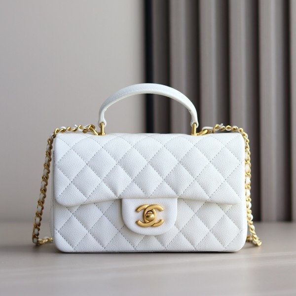 • 샤넬 핸들 미니 CF 플랩백 캐비어 화이트 금장 AS2431