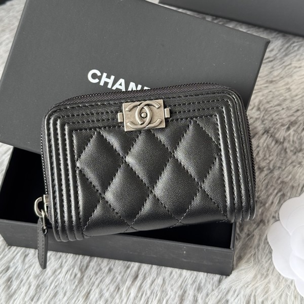 • 샤넬 보이 램스킨 은장 카드지갑 A80602