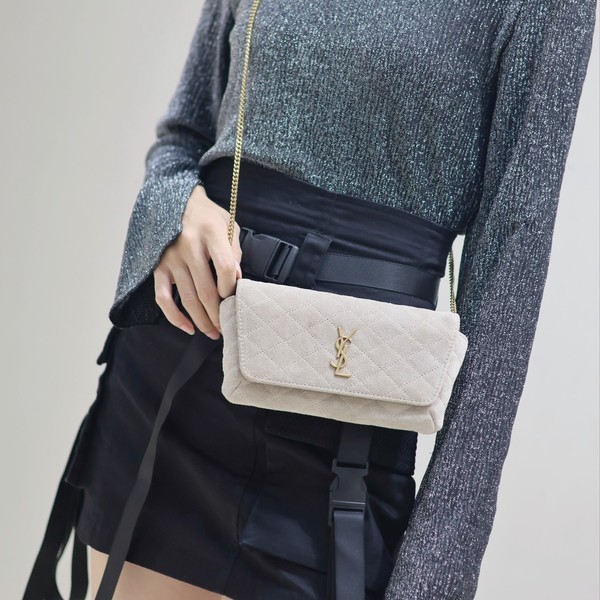 • 생로랑 로고 플라크 플랩 패스닝 퀼트 숄더 754051