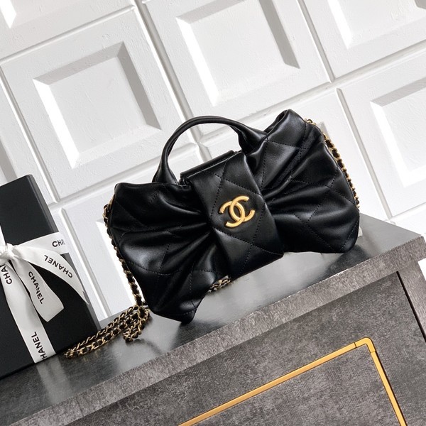 • 샤넬 25FW 25K 리본백 램스킨 블랙 골드 AS5849
