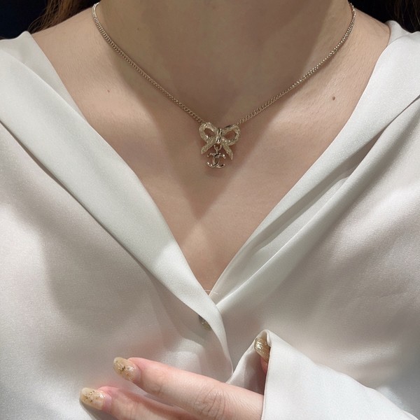 • 샤넬 로고 리본 골드 목걸이
