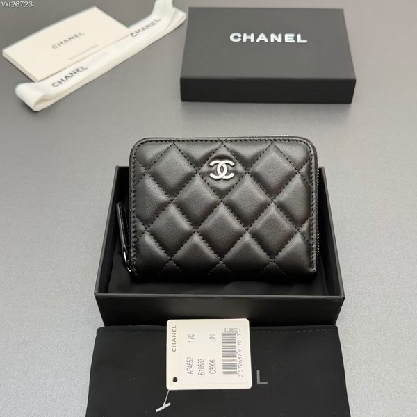 • 샤넬 25SS 클래식 지퍼 카드 반지갑 AP4652 (램스킨 은장)