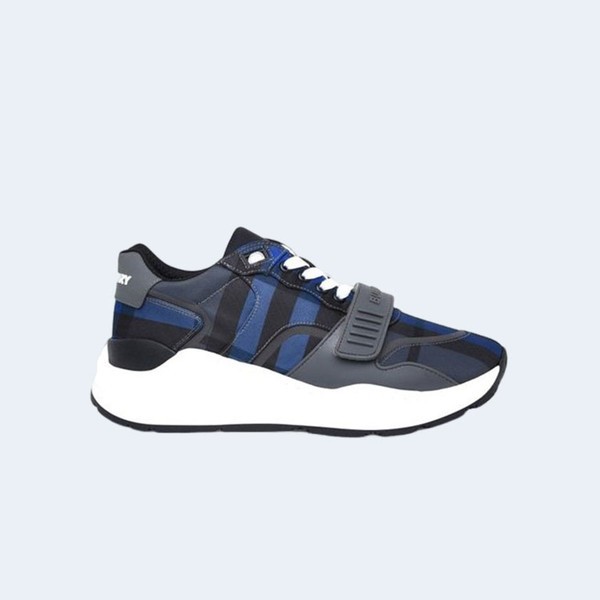 버버리 체크 레더 스니커즈 블루 > 버버리