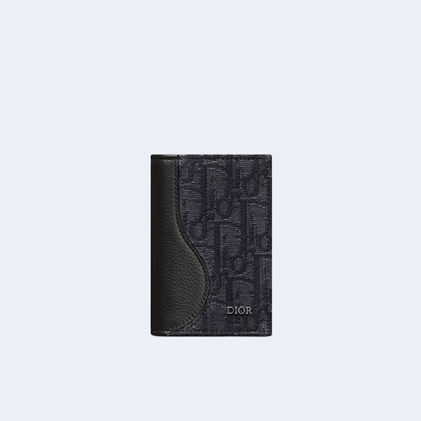 디올 오블리크 새들 버티컬 2단 카드 지갑 블랙 > 디올