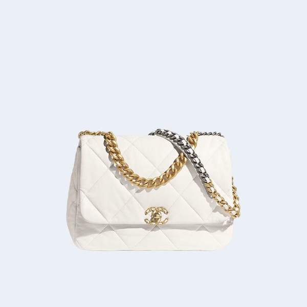 샤넬 19백 라지 램스킨 화이트 골드 > 19 백