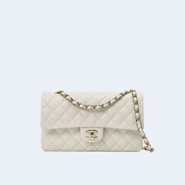 샤넬 클래식 미디움 캐비어 화이트 골드 > 클래식
