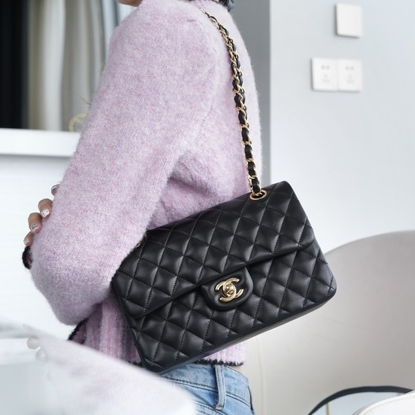 샤넬 클래식 스몰 램스킨 블랙 골드 > 클래식