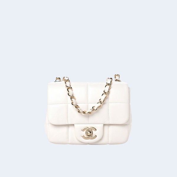 • 샤넬 램스킨 미니 크리스탈 스퀘어 화이트