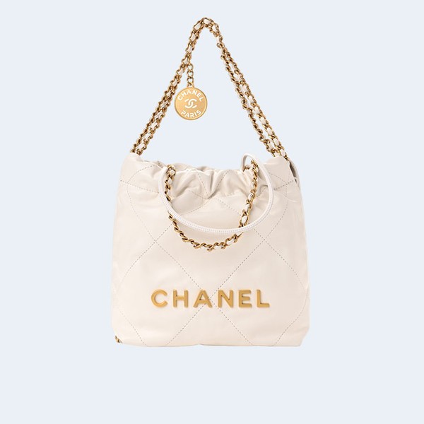 샤넬 22백 미니 카프스킨 화이트 골드 > 22백