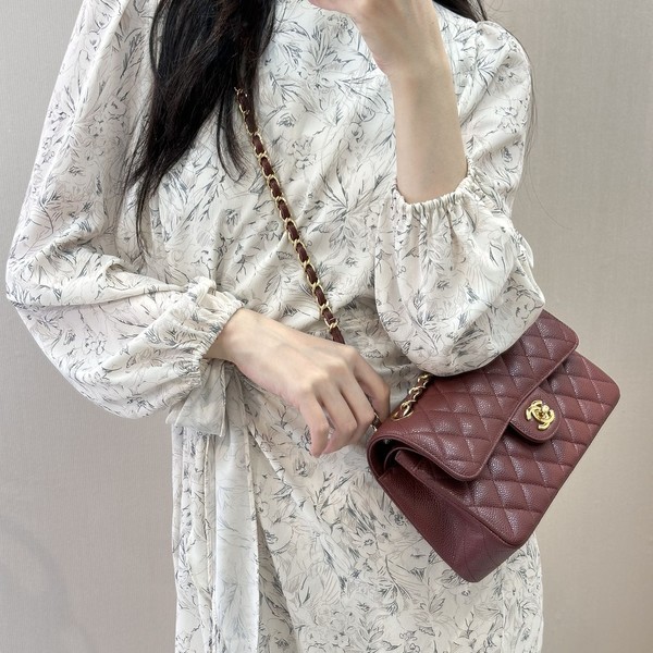 • 샤넬 클래식 캐비어 버건디 골드