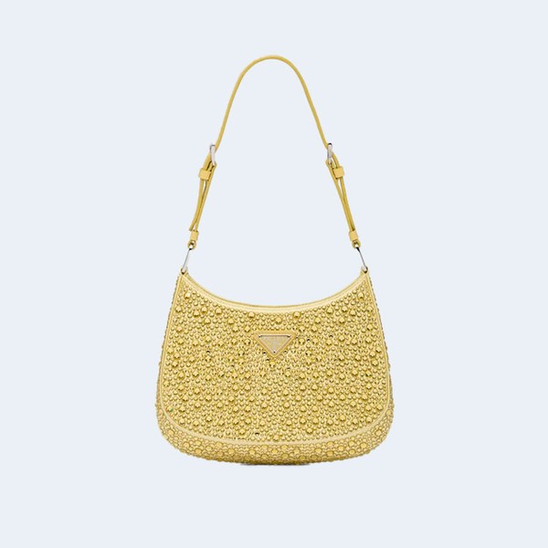 프라다 클레오 크리스탈 새틴 숄더백 옐로우 > 숄더백